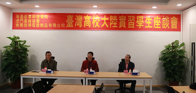 3月13日,粤台产业科技学院院长陈伟、副书记王玉等一行到东莞亿得电器制品有限公司,看望慰问在莞实习台湾大学生。