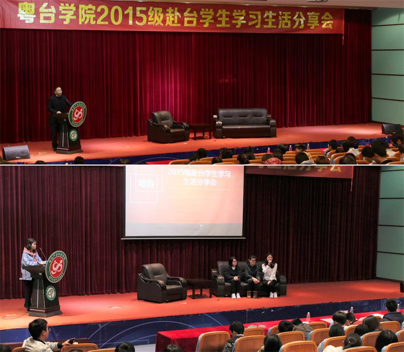 近日,粤台产业科技学院赴台学习交流第一批返校同学顺利抵达莞城校区,为更好地开展赴台工作,粤台学院在莞城校区学术报告厅举办了2015级赴台学生学习分享会。