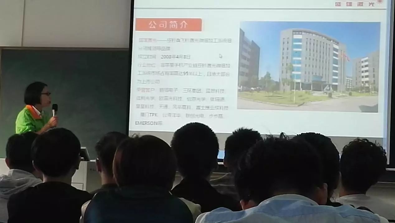 11月8号下午,东莞市盛雄激光设备有限公司(以下简称盛雄激光)来我校开展招聘宣讲会。本次宣讲会在我校6D201进行,盛雄激光负责人刘文彬、人事负责人以及光电工程系主任王红成、教师黄晓园出席了现场。全会一共有30多名学生参加,主要来自光电、自动化等专业。