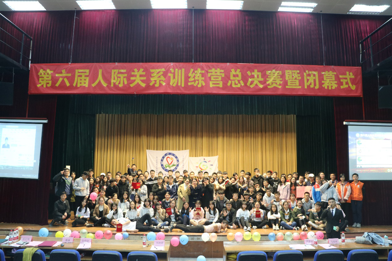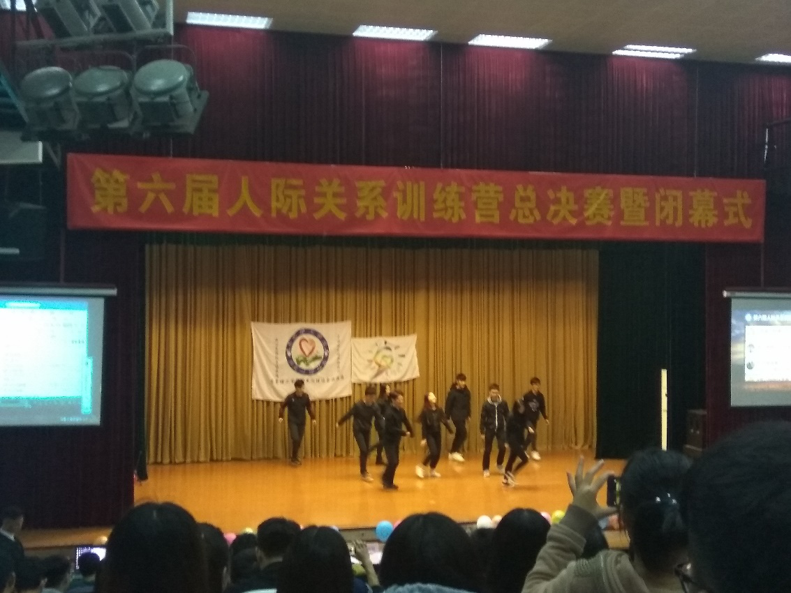 1216日晚,由学生社区知行学院主办,阳光心理协会承办的第六届人际关系训练营总决赛在我校学生活动中心小剧场闭幕。