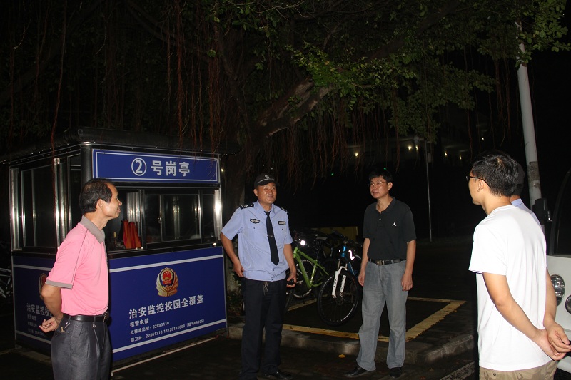 10月1日晚,国庆佳节之际,保卫处处长张力带队巡查校园,慰问在岗执勤的校卫队员。