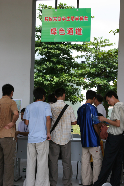 学院组织了大批青年志愿者帮助新生办理报到手续。