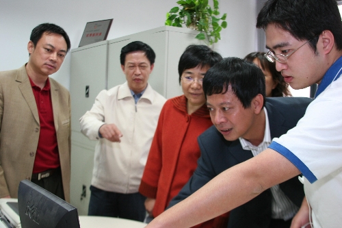 2006年12月5日,东莞市直机关工委考评我院党建工作,图为市直工委核检宣传部“文明科室”资格