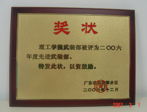 日前,在市军分区召开的全市武装部工作会议中,我院的武装工作得到上级军事机关的肯定,被广东省东莞军分区评为“2006年度先进武装部”。