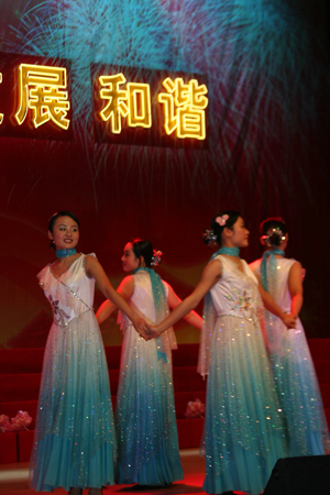 在迎春酒会上,参加酒会的领导嘉宾一同举杯,恭祝全院教职工、老干部、老同志新春快乐,生活幸福。杨晓西院长在祝酒辞中,代表学院向所有光临团拜会的领导和嘉宾表示热烈的欢迎,向全院教职员工一年来的辛劳和奉献表示衷心的感谢。他回顾了2006年学院在教学工作、人才引进、和谐校园建设、科学研究和校园文化建设、协办第七届大运会、迎接学士学位授予单位评审等各方面取得的累累硕果,希望全院师生员工继续团结一致,求真务实,打好“迎评促建”攻坚战,为建设具有创新特色的名牌地方院校而努力。酒会上,还燃放了焰火,在空中盛放的焰火与人们脸上洋溢着的喜悦构成了一幅暖意浓浓的“迎春图”,不少老师举起手中的相机,留住这美丽的一刻。