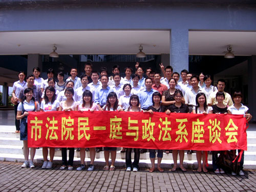 6月15日上午,我院政法系师生与东莞市法院民一庭法官举行了“法律人生,精彩人生”为主题的座谈会。东莞市法院陈葵副院长带领民—庭刘应琪庭长、邝颖梅副庭长以及民一庭法官、书记员共11人,参加了本次座谈会。学院党委副书记王江水,政法系党总支书记、系主任李洪君,党总支副书记潘荣新,系副主任王平以及政法系法学教研室多位教师以及法学专业的学生代表参加了本次座谈会。