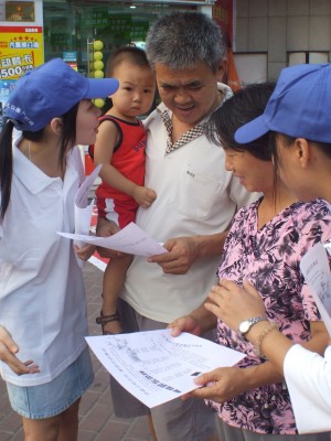 在长盛广场的启动仪式上,志愿者们穿上统一的服装,向过往行人发放宣扬文明礼仪的宣传单张,号召在场市民积极参与倡导文明礼仪行动的签名活动。本次活动得到了许多市民的支持,市民纷纷向在场志愿者们索取宣传单张,并仔细地阅读宣传单张中提到的“文明礼貌三字经”等文明礼仪教育信息,最后还踊跃地在“争做文明市民,喜迎北京奥运”的横幅上签上自己的名字,一些家长更是牵上自己的孩子前来签名,以表明自己对这次活动的渴望和支持,其中一名家长表示:“我们国家正在积极建设和谐的社会,为此,讲究文明礼仪其实是我们每个人都应该做到的,而教育好下一代也正是普及文明礼仪工作的重中之重,作为家长的我们,非常地希望孩子们能从小就培养好文明礼仪的意识,成为一个现代社会的文明人”。