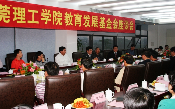 座谈会由院党委书记周致纳主持,杨晓西院长向与会代表介绍了我院教育发展基金会的进展情况。老市长郑锦滔在会上指出,学院建院15年来,经历了从无到有、从小到大、从低到高的过程,取得了可喜的成就,为东莞培养了大批人才,学院成立教育发展基金会是一件功在当代、利在千秋的事情,他呼吁广大企业家积极支持我院的基金会建设和发展。郑老还欣然挥笔:“辉煌贡献十五载,满园英才世纪功”勉励我院。