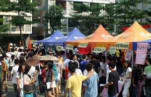 18日下午,学生公寓广场举行了一场别开生面的开幕仪式,随着院团委书记、学生处副处长彭晓波宣布活动启动,为期一个月的社团文化节正式拉开了序幕,同时,广场上55个社团也开始了紧张的现场招新工作,活动现场热闹纷呈。