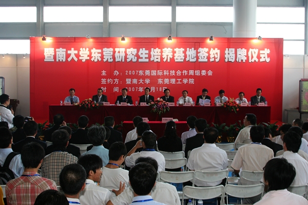18日上午,暨南大学与我院在“东莞科技合作周”上签订协议,双方将联合开展研究生培养工作。这是继2005年我院与华南理工大学与开展联合培养研究生工作以来的、与我院合作开展研究生联合培养的第二所“211工程”重点综合性大学。