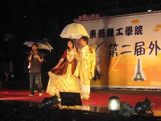 2007年12月23日晚,在学生宿舍广场隆重举行了由学院学生处、团委主办,外语系承办的第二届外国文化节闭幕式晚会。出席此次晚会的有外语系罗碧波书记等老师以及各系学生会主席团总支副书记等。虽然当天晚上天下着蒙蒙细雨,但现场气氛却是很热闹。台上晚会节目精彩纷呈,台下的外国风情摊位展也是缤纷无限。