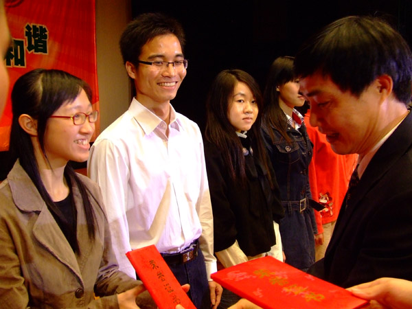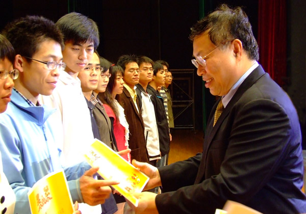 12月20日,我院2006-2007学年度奖学金颁发典礼在大礼堂隆重举行。此次共颁出个人、集体奖15项,包括先进班集体、优秀大学生标兵、优秀大学生、优秀学生干部及各类奖学金。2006——2007学年度共有19个班级被评为先进班集体,2069人次获得各类奖学金,各类奖学金共计人民币1687800元,另有19人被评为优秀大学生标兵,320人被评为优秀大学生,326人被评为优秀学生干部。