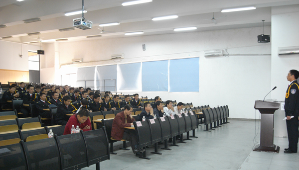 这是自我院进驻松山湖以来,保卫处连续第五次举行校卫队骨干竞争上岗活动。竞争岗位分别有:队长一名、副队长一名、班长三名。竞争上岗由四部分内容组成,分别包括:业务技能考核、笔试、演讲答辩和组织考察。为体现公开、公平、公正的原则,保卫处还邀请了人事处曾熙科长和伍志华老师一齐参与考核,每项考核结束后,考核成绩即在校卫队队部进行公布。同时,今年的考核内容与往年有所不同,主要内容之一便是围绕学院本科教学水平评估的知识进行考核。
