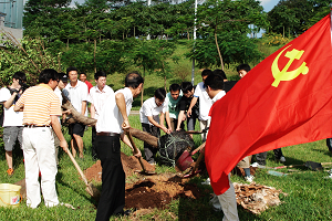 下午四点,文学院党总支全体党员集中在文科楼下,在党总支副书记凌晓蕾的带领下,齐声高呼:“伟大的中国共产党祝您87岁生日快乐”。在接下来的种树仪式中,党员们轮流为文学院党总支特意挑选的具有旺盛生命力的榕树填土、浇水,希望榕树茁壮成长。之后,靖辉老师在大家的掌声中为榕树挂上“文学院党总支2008‘七·一’树”的牌匾。最后,庆祝仪式在全体党员齐声高唱“没有共产党就没有新中国”的歌声中结束。