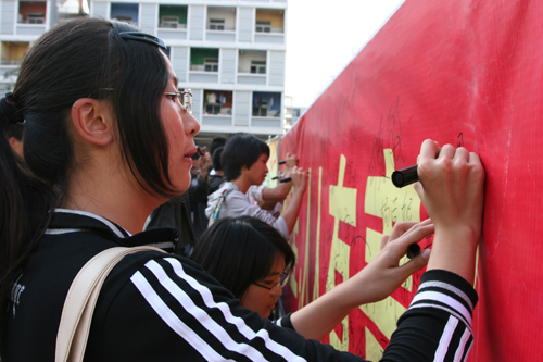 11月13日下午,我校2008年地震应急与消防疏散演习在我校学生宿舍区举行,超过1000名同学参加了演习。