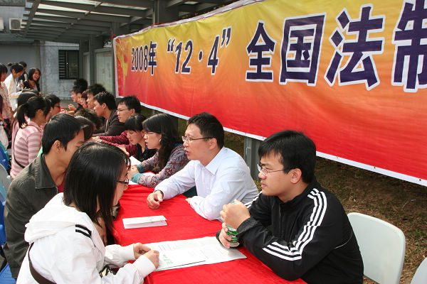 在此次宣传活动中,政法学院在一期饭堂旁边设立了法律知识咨询处,由该学 院法学专业的老师以及今年通过司法考试的学生免费为师生提供法律知识咨询 服务,他们耐心地解答同学们提出的有关法律方面的疑难问题。现场气氛非常 活跃,不少同学都渴望对法律有更深一层的认识,纷纷在咨询点进行咨询。据悉,同学们对与他们的学习、生活、就业等密切相关的法律知识较为关注。