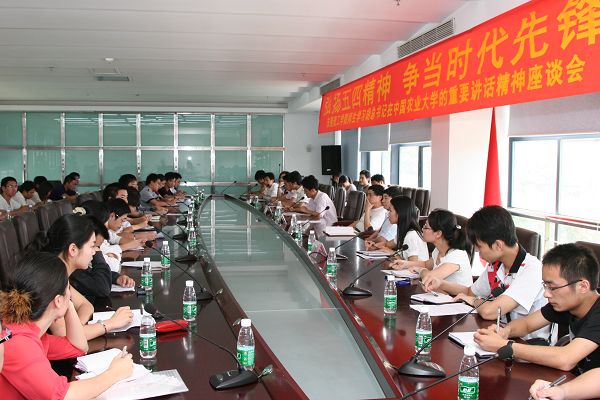 座谈会上,师生代表们结合自身实际情况,纷纷畅谈了自己对胡总书记在中国农业大学的讲话精神的理解以及五四精神在现代的意义,特别是对如何弘扬五四精神,怎样才算是合格的青年进行了深入的探讨。师生们认为,发扬五四精神和学习贯彻胡总书记的讲话精神,要将个人理想和全民族理想融为一体,牢记历史使命,勇挑历史重担,将爱国转化为行动,从自身的生活、学习和工作中踏踏实实地做起,不怕吃苦、甘于奉献,做一个有梦想、有志气、有朝气和有信念的青年。