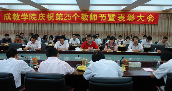 2009年9月4日下午,我校成教学院在莞城校区隆重庆祝我国第25个教师节暨表彰大会。成教学院全体教职员工参加了庆祝活动。会议由成教学院办公室主任李纠主持。