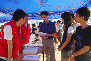15日下午,社团正式开展招新报名工作。跆拳道协会的即场表演、动漫协会的珍藏模型展示、吉他协会的激情演奏等令现场气氛瞬间活跃起来,摊位前人山人海,各学生社团负责人使尽浑身解数吸引学生前来报名。据悉,本次共有8094人次报名参加各学生社团,其中最受新生追捧的学生社团是职业生涯发展协会和交谊舞协会,报名人数高达620人。本次学生社团招新活动为社团注入了新的血液,为社团的发展带来了新的机遇,各社团负责人表示将怀揣着新成员的激情和信任共同奋斗,不断地壮大社团的力量,为繁荣社团文化添砖加瓦。