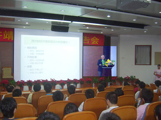 在当天晚上的讲座中,许院士给莞工学子们讲述了西方经济衰弱的原因——科技的腐化。许院士通过举例对比部分东西方科技发展的差异,再次验证了“科学技术是第一生产力”这一经典观点。但是许院士强调,科学技术也要勇于创新、与时俱进。许院士精辟的演讲让在座的同学听得津津有味,科学大师的人格魅力更是征服了在座的每一位莞工学子,让每一位莞工学子由衷地钦佩。