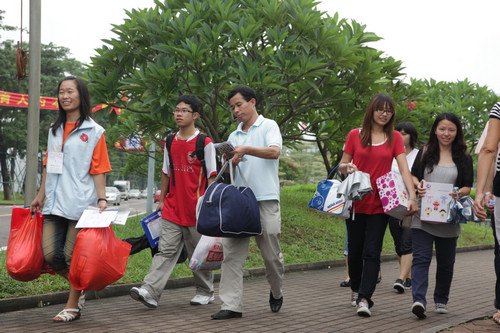 昨日, 2800多名2010级新生从祖国的四面八方来到学校,办理注册报到手续,成为莞工学子,踏上人生新行程,开始了四年大学生活。