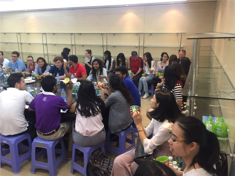 在公司的安排下,同学们参观了公司产品的生产流程——模管、花纸课、实验室、原料他、成型课、研磨课。随后我校学生与美国德州大学和香港中文大学的学生进行了交流。
