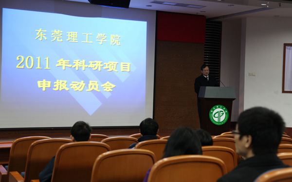 1月11日下午,我校在学术交流中心召开2011年科研项目申报工作动员大会。全校重点学科建设单位教学科研人员,副教授或博士以上教学科研人员及有意申请科研项目的其他教师参加会议。
