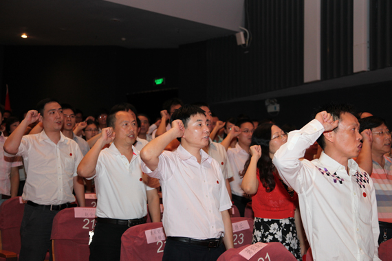 “我志愿加入中国共产党,拥护党的纲领,遵守党的章程,履行党员义务……永不叛党。 ”6月29日,我校全体党员隆重集会,庆祝中国共产党成立90周年。在庄严的党旗下,372名新党员进行入党宣誓,老党员则重温入党誓词。