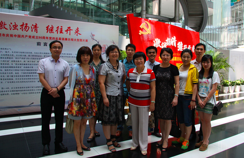 7月5日,在庆祝中国共产党成立90周年之际,在校党委副书记、纪委书记黄碧莲率领下,机关三支部(审计监察处、工会、国际交流处)全体党员前往市图书馆参观由东莞市检察院和市监察局主办的主题为“激浊扬清继往开来”党的反腐倡廉历程大型图片展。
