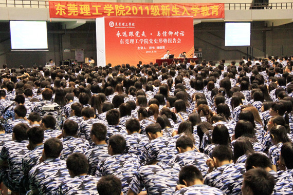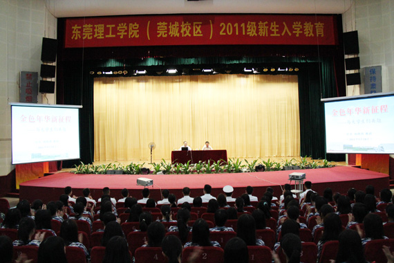 9月16日和18日晚间,学校校长杨晓西教授分别在松山湖校区和莞城校区为2011级新生上了一堂题为“金色年华新征程”的入学教育课。