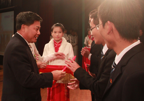 学校党委书记周致纳在致辞中肯定了同学们的努力。他表示获奖的同学们用辛勤的汗水换来了今天的骄人成绩,希望获奖者把获奖作为新起点,不断超越自己,而且影响和带动广大的同学,勇争上游;也希望全校师生向莅校颁奖的嘉宾和校友学习,成功不忘社会恩,成功不忘母校情。
