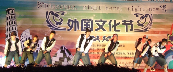 晚会在外语系舞蹈队以热辣的草裙舞Waka Waka中拉开序幕,悦人的音乐,热辣的舞姿,吸引了众多师生前来观看。随后还有T台-Catwall、外教表演、4国语言歌曲串烧等一系列精彩的节目让观众赞不绝口,现场掌声不断。