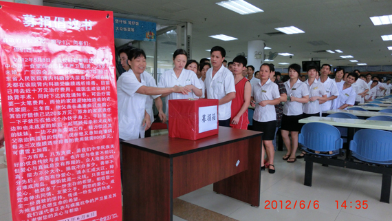 一方有难,八方支援。6月6日,后勤集团在第二食堂门口为身患重病、家境贫困的饮食中心员工严卫星举行募捐活动。戴炳源副校长、资产后勤管理处处长兼后勤集团总经理张力、后勤集团党总支书记宋美娴带头捐款,集团全体干部员工积极参与、纷纷慷慨解囊,共募得善款24000多元。据介绍,后勤集团希望通过此次募捐活动,号召全校更多师生参与进来,献出爱心,为患病员工带去希望和信心,让他早日战胜病魔,重回岗位。