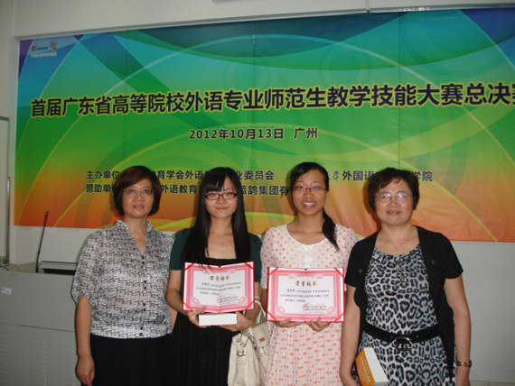 近日,外语系2009级学生张婉华和莫丽萍在指导老师陈淑芳、张漱梅的带领下,前往广州参加首届广东省英语师范生教学技能比赛,经过层层选拔,最终荣获广东省英语师范生教学技能比赛二等奖的好成绩。