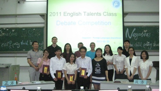 5月30日,我校2011级大英试验班举办首次英语辩论赛,为我校英语爱好者展示了一场激烈的英语辩论盛宴。这也是我校首次举办的全英语辩论赛。