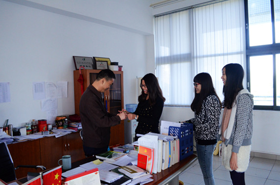 11月28日,建筑工程系的同学也过起了西方的感恩节。同学们将自己想对老师说的话和对老师悉心培育的感激之情写在一张小卡纸上,并把小卡纸拼成心形贴在该系的宣传展板上。此外,同学们还到老师的办公室开展拜访活动,感谢老师们对学生的悉心栽培。