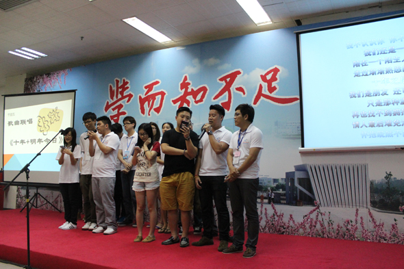 晚上,全体营员齐聚我校学术交流中心参加联欢会。联欢会由全体营员共同策划、编排,营员们以小组为单位,表演了唱歌、魔术、街舞等节目,展现了自己的才艺。联欢会还穿插了互动游戏环节,欢声笑语不断,其乐融融。最后,在《朋友》的旋律中,联欢会圆满结束。