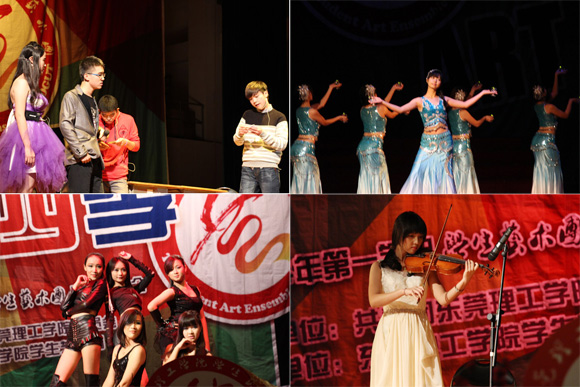 随着强劲的鼓声响起,乐队演奏的YELLOW拉开了晚会序幕。整场晚会以四季为主线,展示了艺术团一年来的成长,彰显了艺术团的青春与活力。清新淡雅的歌舞《青花瓷》在清脆的古筝声中引领观众进入了春的篇章,来自舞蹈队的Good girl bad girl以火辣的造型、绚烂的舞姿以及优美的灯光,充分展现了其视觉震撼力,将晚会气氛推向了高潮。而话剧表演《他她他》以幽默风趣的风格诠释大学生活,表达了大学生的收获与期许。