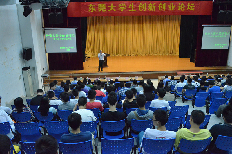 4月24日,由创业学院举办的创新创业论坛在松山湖校区举行。东莞市工商行政管理局副调研员张志平介绍了工商登记中的程序和优惠政策,清华大学东莞创新中心副主任赵越作了主题为“投资人眼中的好项目”的讲座,清华东莞创新中心办公室副主任林建强介绍了东莞清研联华集群注册托管有限公司基本情况。