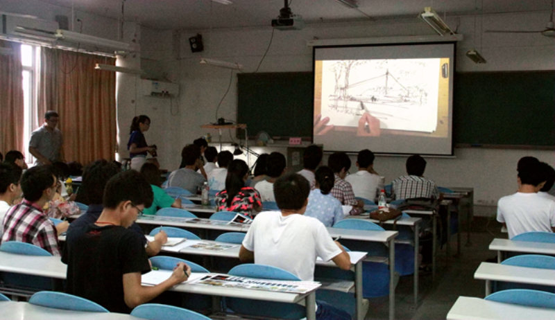 5月15日,建筑工程系在松山湖教学楼举行手绘建筑学习交流会。本次交流会由中国建筑、景观、规划、室内手绘专家陈马带主讲。