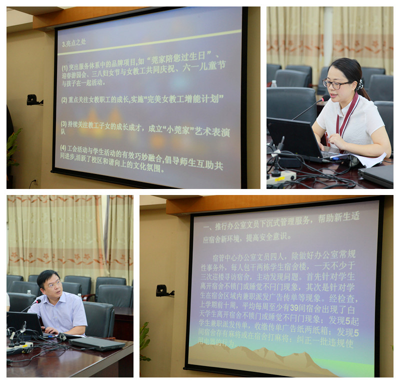 学校党办、宣传部、财务处、保卫处、莞城校区、文学院等单位的中层干部带头提交作品参加了比赛。电子工程学院、莞城校区、机关党总支等单位在初赛中还组织办公室及管理岗位的同志一起进行了现场点评或评选。参赛的同志,立足本职工作实际、围绕服务高建工作的主题,提出许多有价值的思路办法和点子,堪称“金点子”“微举措”和 “精品牌”。如 “工作月历”、“构建新型师生关系,促进教学相长的实践和探索”、“图书馆科技查新服务建设”、“校园网络报修系统”、“莞家”精品牌建设等等。