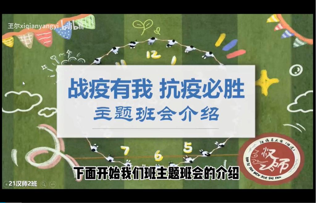 本次大赛分为初赛和决赛两个部分,比赛过程中,各学院的助班们踊跃参与,共收集到63份视频作品。经过评委组初评,评选出10份作品进入决赛。决赛以疫情防控“大思政课”为主题,选手们通过政策宣讲、故事分享、组织诗朗诵和合唱等方式丰富了班会的内涵。