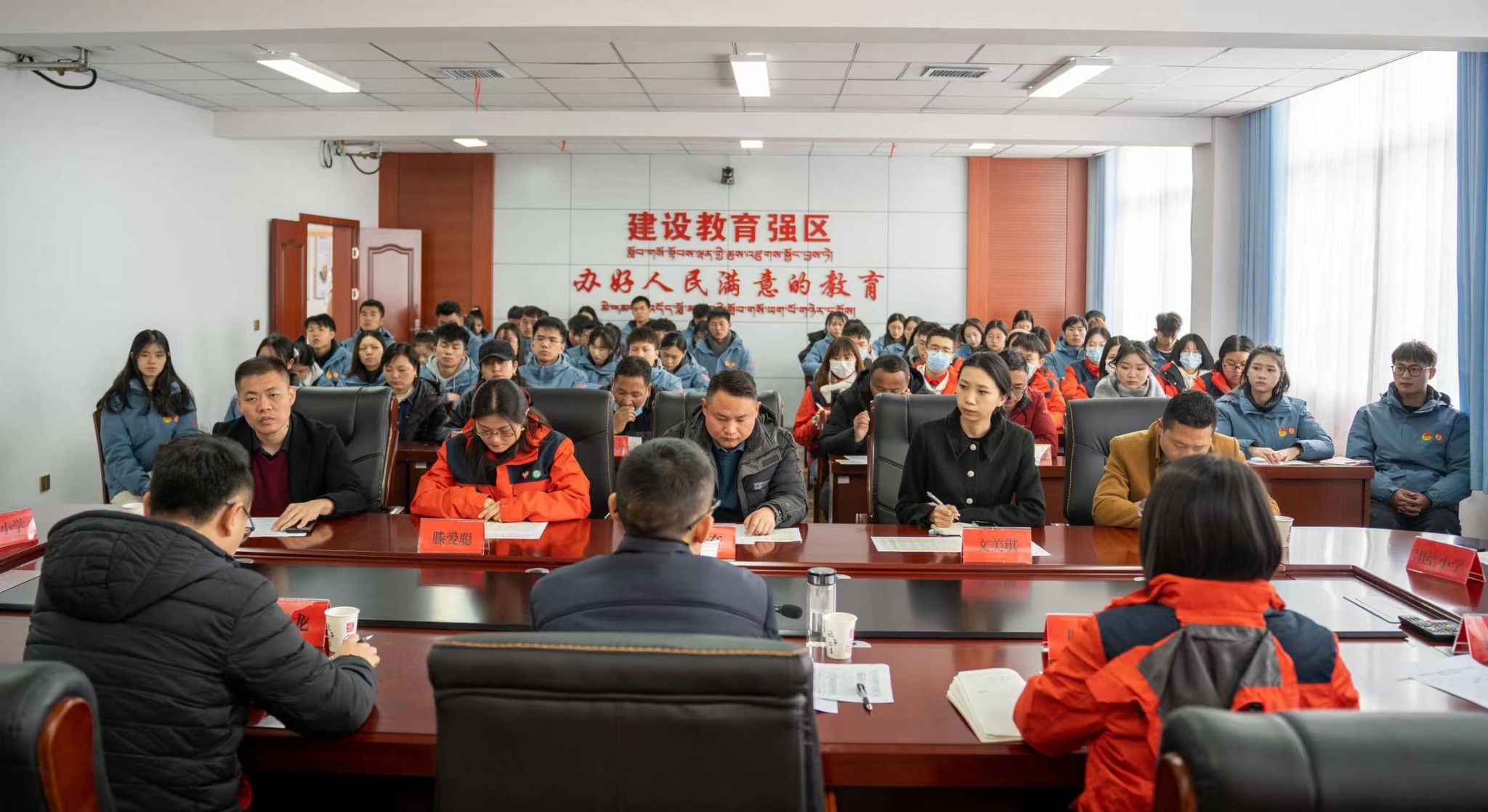 3月4日,林芝市巴宜区教育局(区体育局)举行支教大学生志愿队欢迎仪式。巴宜区委常务副书记、常务副区长陈健华向全体队员介绍了援藏(林芝)支教工作的重要意义,并对同学们的工作提出殷切的期望。巴宜区教育局党组书记、局长邱志勇对支教期间的工作和纪律提出了明确的要求。党委学研工部、学生处学生管理科副科长陈凤宜作为带队教师代表发言,鼓励同学们“锤炼过硬本领,在祖国和人民最需要的地方,为孩子们埋下一颗希望的种子,为孩子们筑梦,为自己筑梦。”