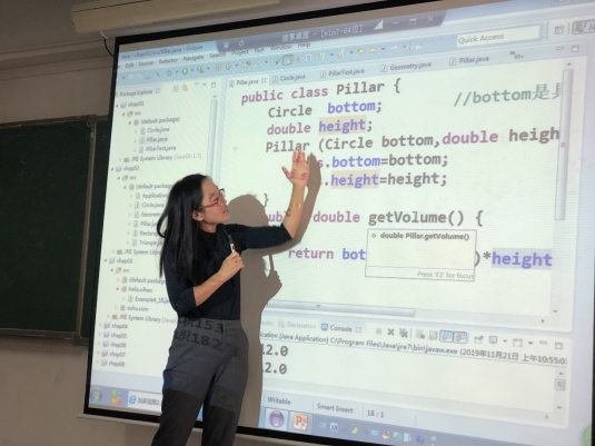 首先,赵慧老师以《Java语言程序设计》课程开始了她15分钟的微课。她以Java抽象类为题,并结合代码、图表等丰富形式向大家完整地讲述了Java抽象类的概念、应用及意义。随后,评委专家们从各自角度与赵老师进行了5分钟左右交流。专家们充分肯定了赵老师的课程设计、语言表达、教案组织等亮点,也从学生交流、课程思政等角度指出了可以继续改进的空间。
