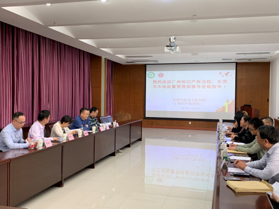 法社学院郑玉敏院长向来宾介绍了东莞知识产权学院和我校的知识产权学科建设情况。双方就合作建立“人才共育机制”、共建“知识产权纠纷调解委员会”等事项进行了深入交流。