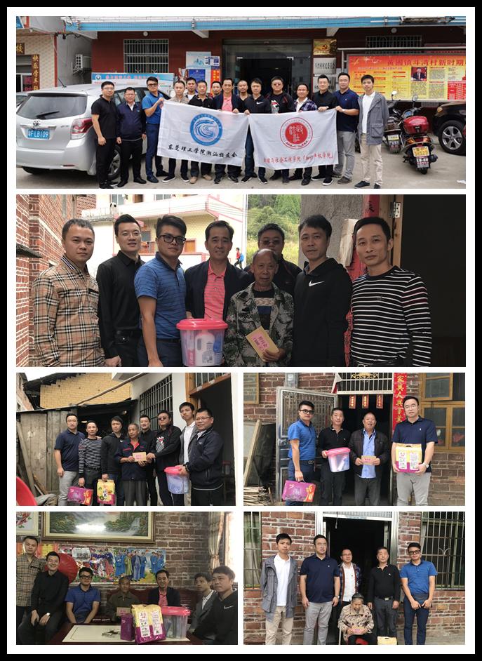 10月17日,全国扶贫日,我校法社学院校友会会长郑文峰、常务副会长简福权、副会长陈炳辉、秘书长李溯携手潮汕校友会会长江怀、常务副会长张慰亮、常务副秘书长许跃凯一行前往我校对口帮扶点韶关乐昌市黄圃镇开展扶贫关爱行动。