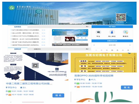 10月8日,我校2020届毕业生校园招聘活动随着新版就业信息网、就业招聘移动端上线正式拉开序幕。系统上线伊始,企业发布招聘信息及申报各类校园专场宣讲会数量呈爆发式增长。中国建设银行、华为、OPPO、万科、中铁十八局、中建二局、平安银行、东莞证券、东莞市能源投资集团、东莞市中外运、顺电电器等国内外众多知名企业相继在我校申请校园专场宣讲会。从招聘日历数据看,10月份至11月中旬,我校校园宣讲会排期已基本饱和。据就业指导与服务中心负责老师介绍,为满足用人单位进校开展宣讲会的迫切需求,中心利用暑假期间完善和优化了就业系统线上申报流程,周一至周六常态化开展企业进校园宣讲会工作。