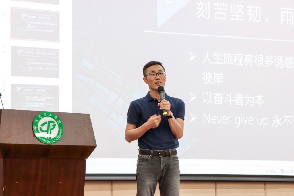 为助力2021届毕业生走向新征程,本次聘任仪式还特意邀请了得利钟表集团总经理刘仁校友回校作了以“脚踏实地,刻苦坚韧,终身学习,成就梦想”为主题的分享会。刘仁校友的分享让即将步入社会的应届毕业生们深受启发。