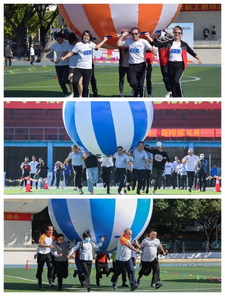 本次趣味运动会共设置6项集体比赛项目,分别是运大彩球、不倒森林、珠行千里、海底穿月、魔力转圈和同心鼓击球。比赛场上10支参赛队伍齐心协力、奋力拼搏,赛场外观众更是热情高涨,加油喝彩声音此起彼伏。